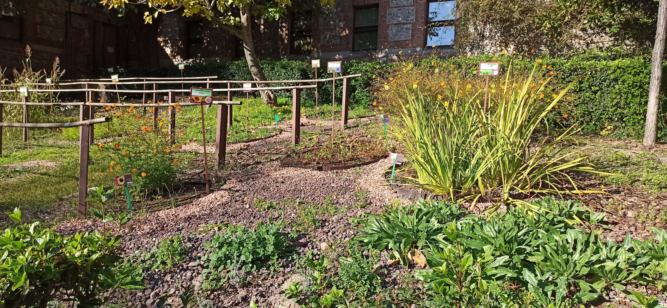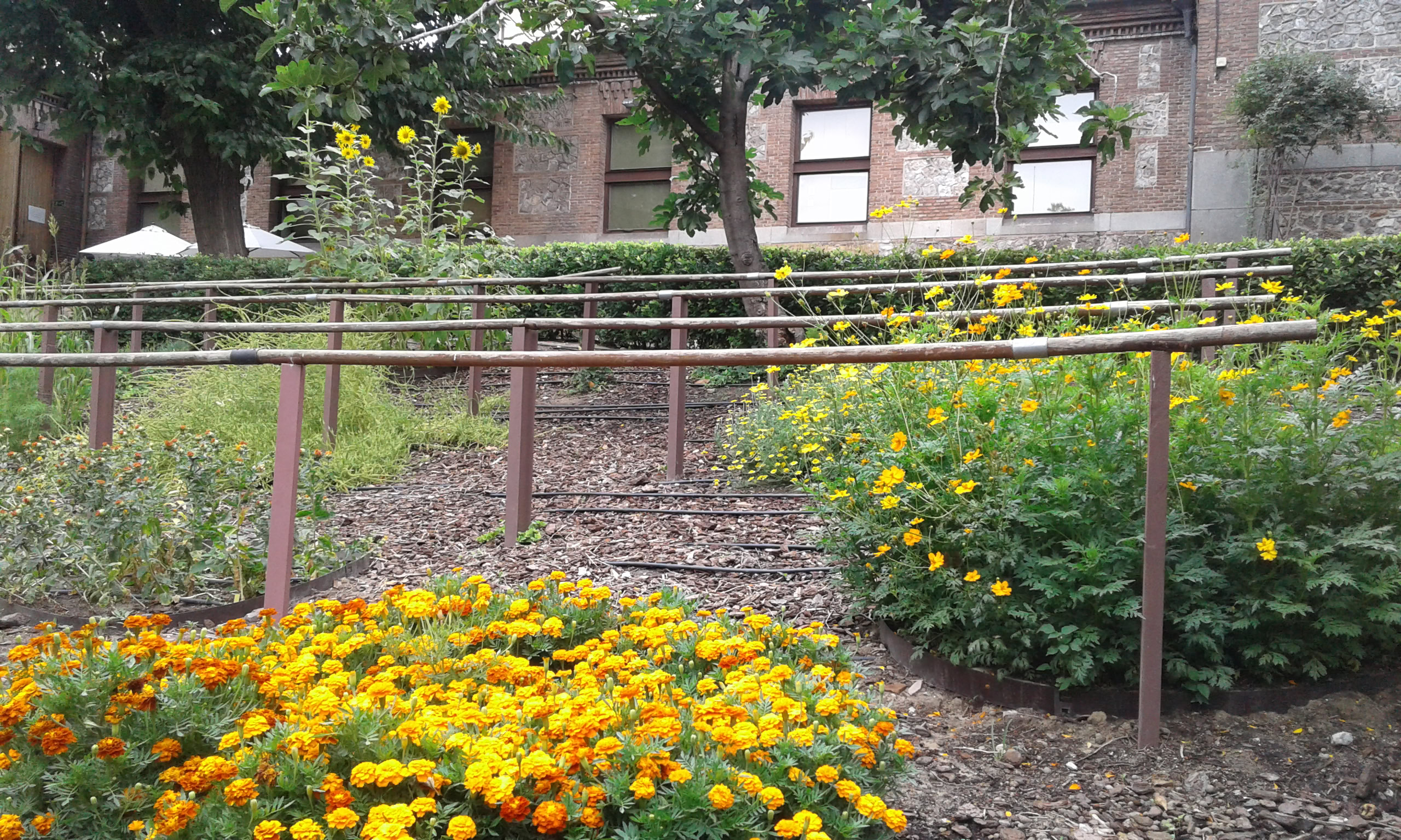 Gracias a una reciente remodelación, el jardín de la Real Fábrica de Tapices alberga una colección de muestras de plantas tintóreas y especies vegetales utilizadas en la obtención de fibras textiles como el algodón o el lino.